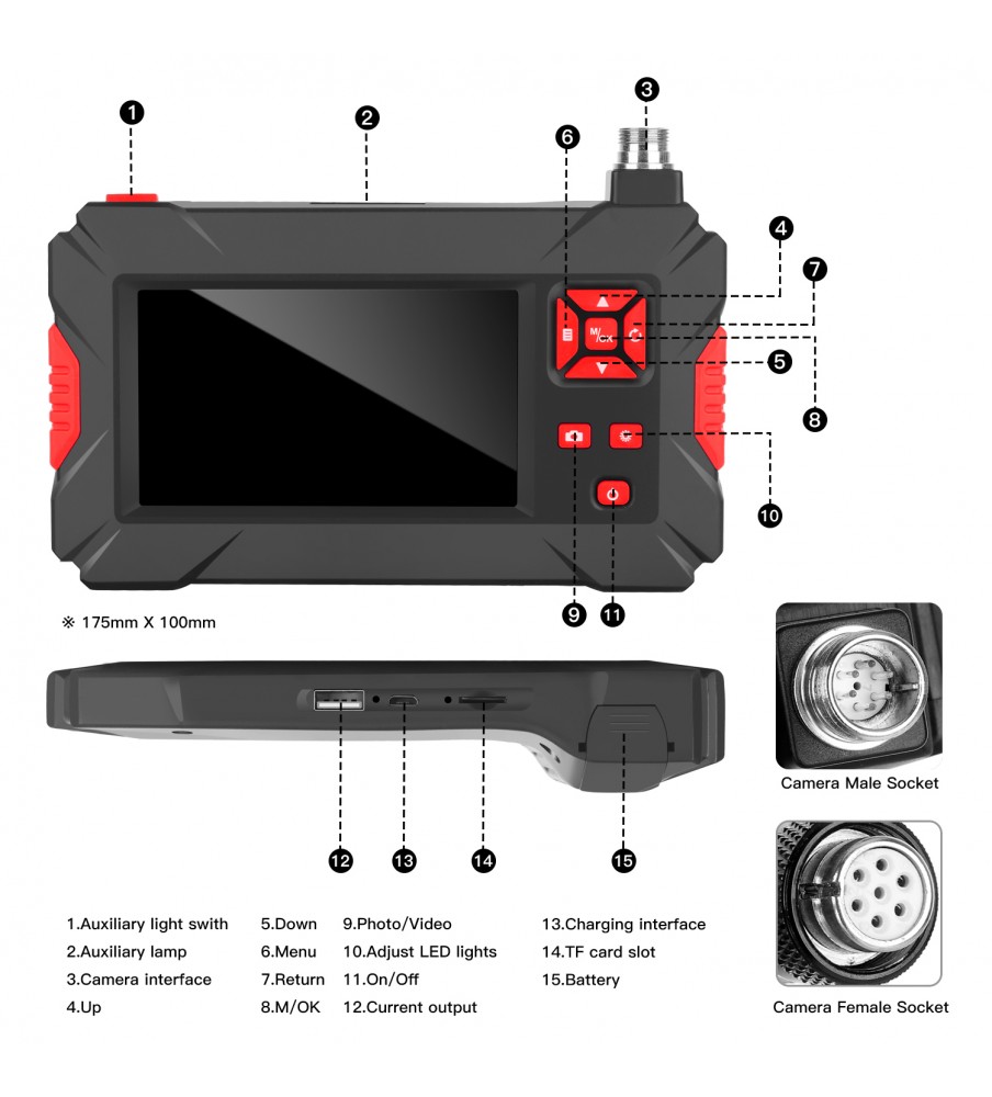 4.3 inch IPS HD screen hard Cable Daul Lens portable handheld car detector pipeline camera industrial endoscope